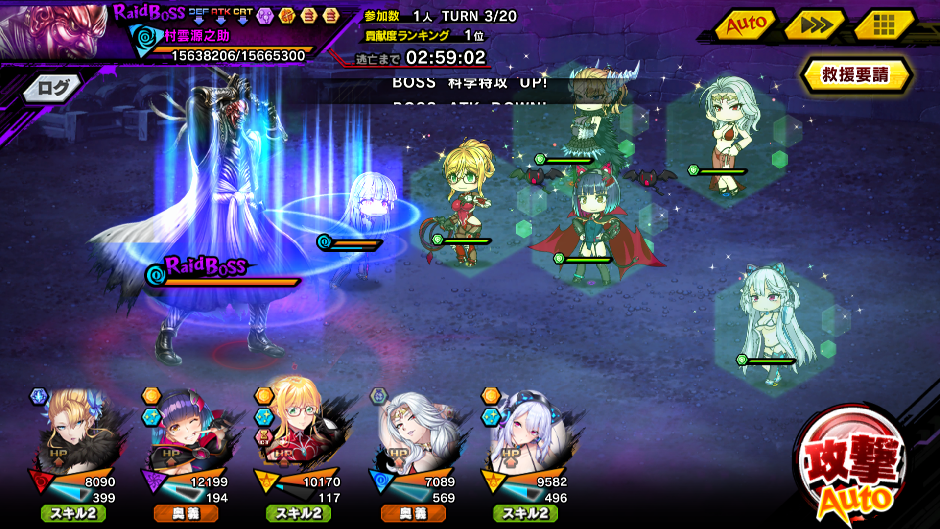 ターゲットの操作を許容するなら正月きららやチョコメルシーを使う所なんですが、「戦闘開始!」を押した後はもう何もしたくないのでこんな感じに。