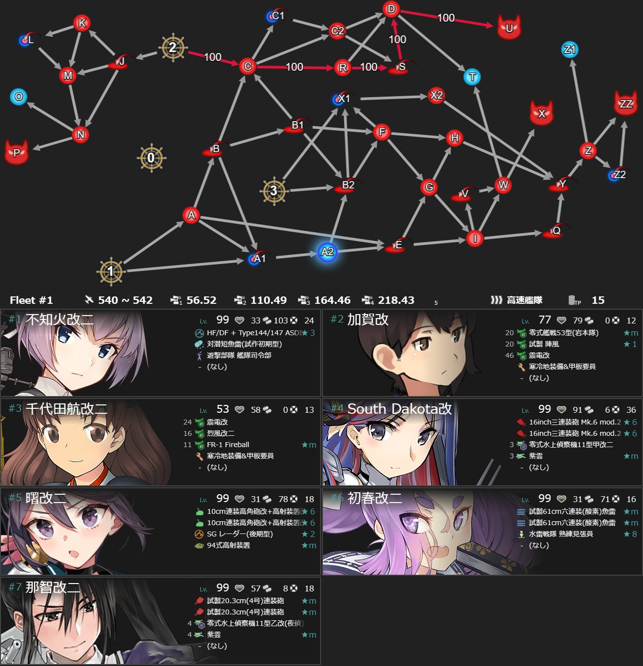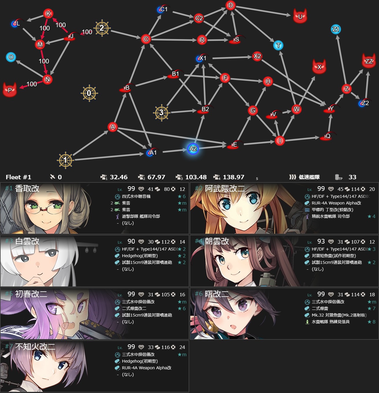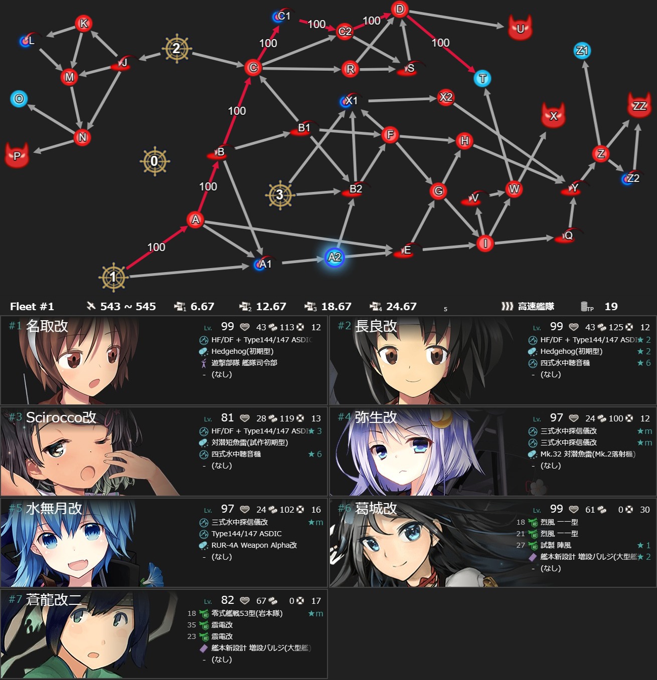 | 索敵 | W 分岐点係数2:85 |