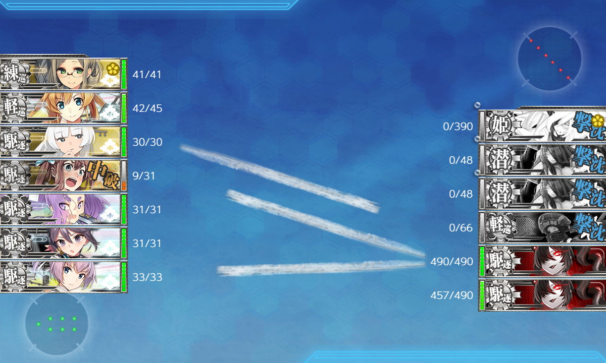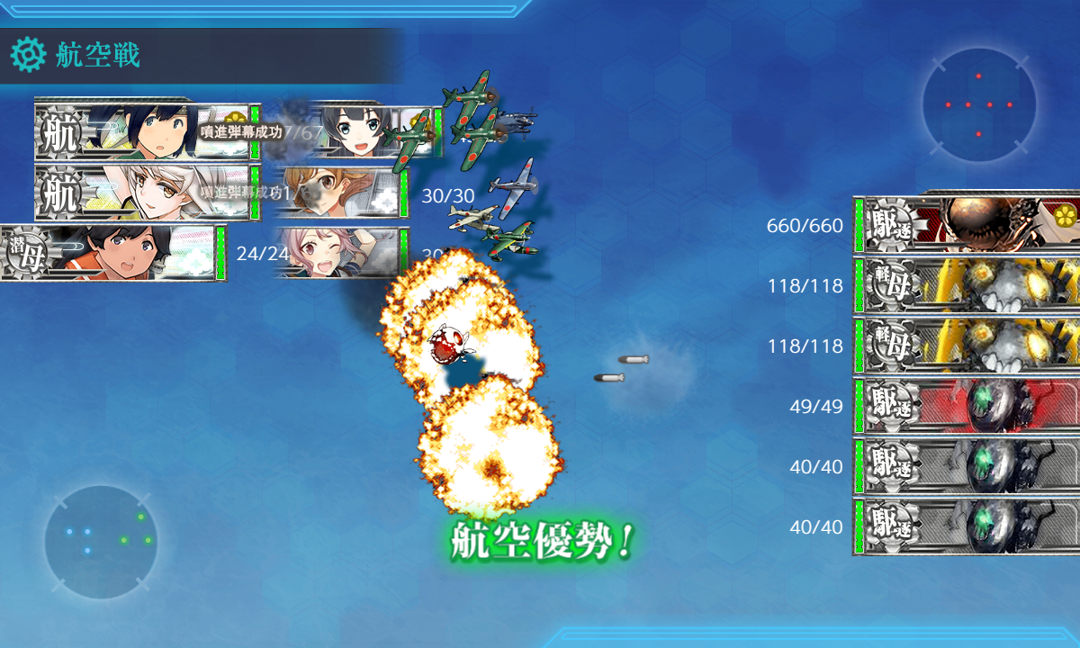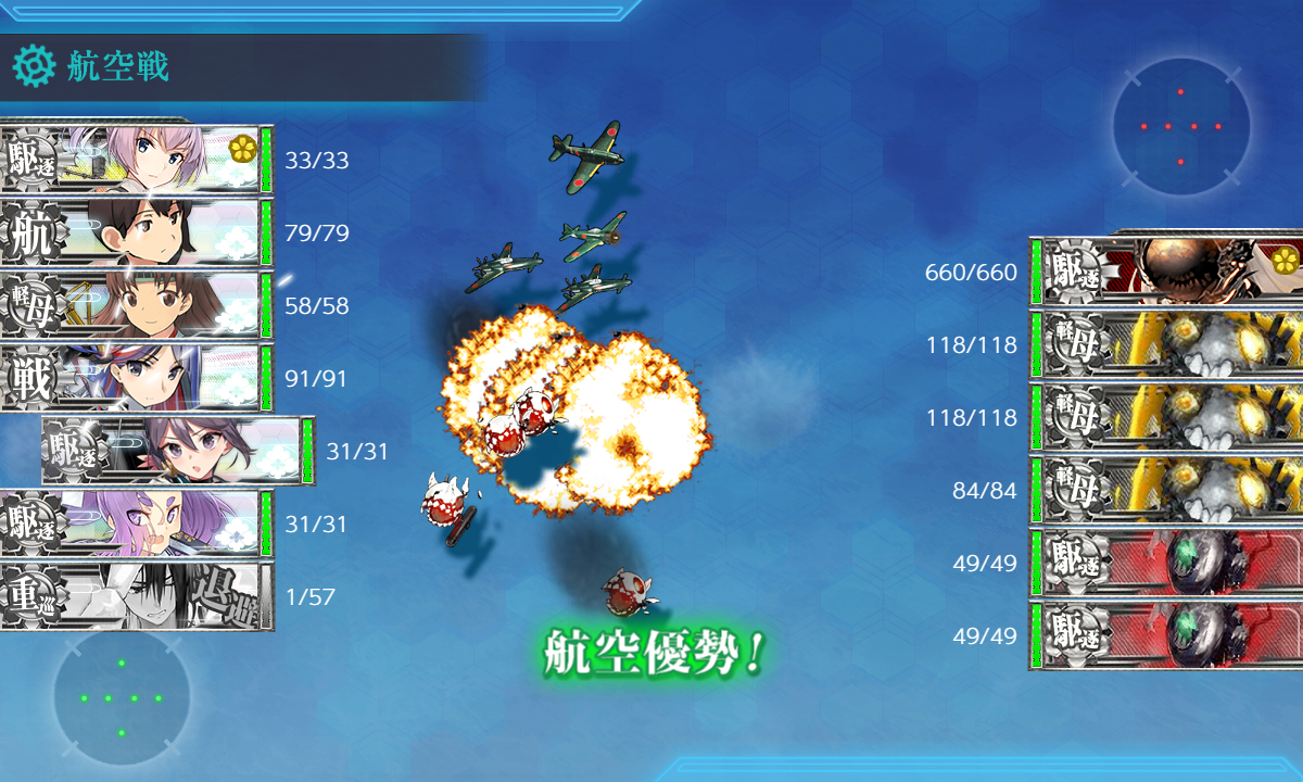 - 航空優勢は1回なのでそれが終わったらSを通らない編成でUに向かってもいいけど、面倒だしそのまま再出撃でも困らないはず。