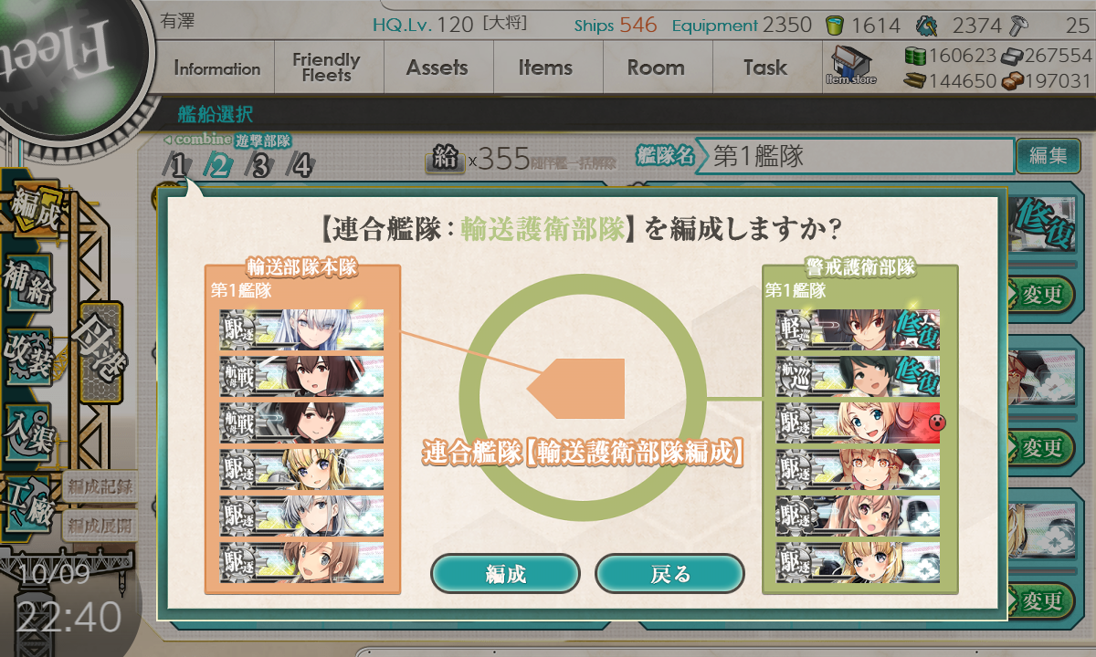 • 「輸送護衛部隊、高速統一、軽空母0、(駆逐+海防)8以上」