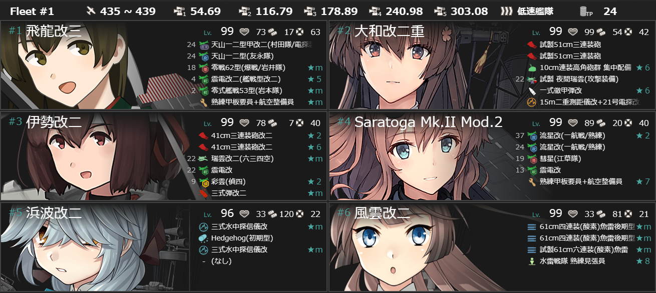 | 編成 | 飛龍改三 [旗艦]、空母系1、戦艦級2、指定駆逐艦2 |