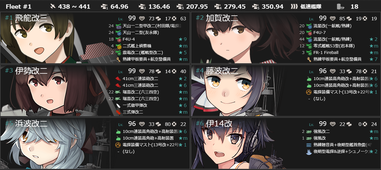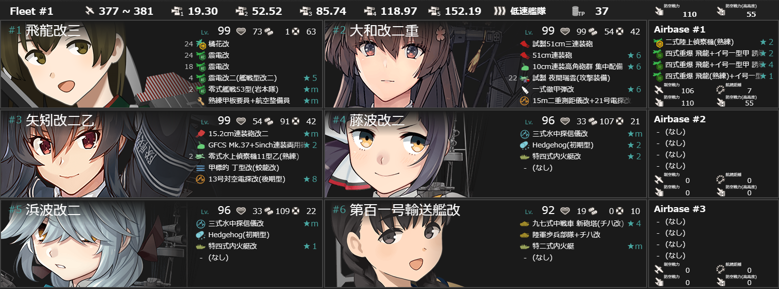 | 制空 | Dマス 優勢321 Hマス前哨 優勢332 Hマス最終 優勢381 |