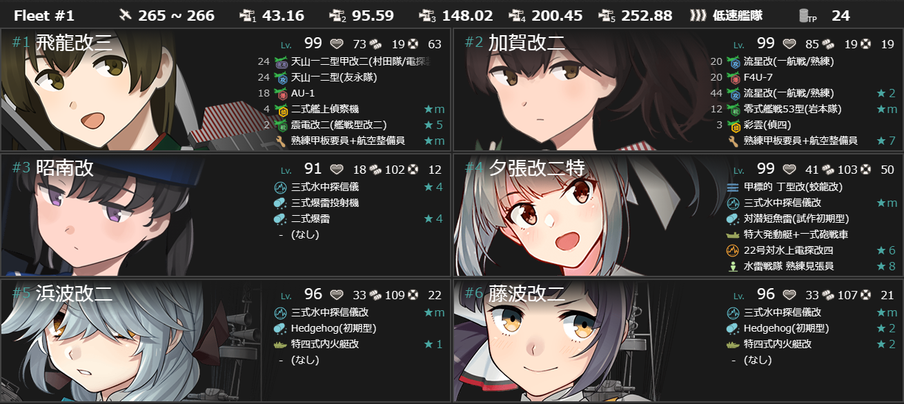 | 対空 | Jマス ツ級 x1 Pマス ツ級 x0~1 Sボスクリア前 ツ級 x0~1 |