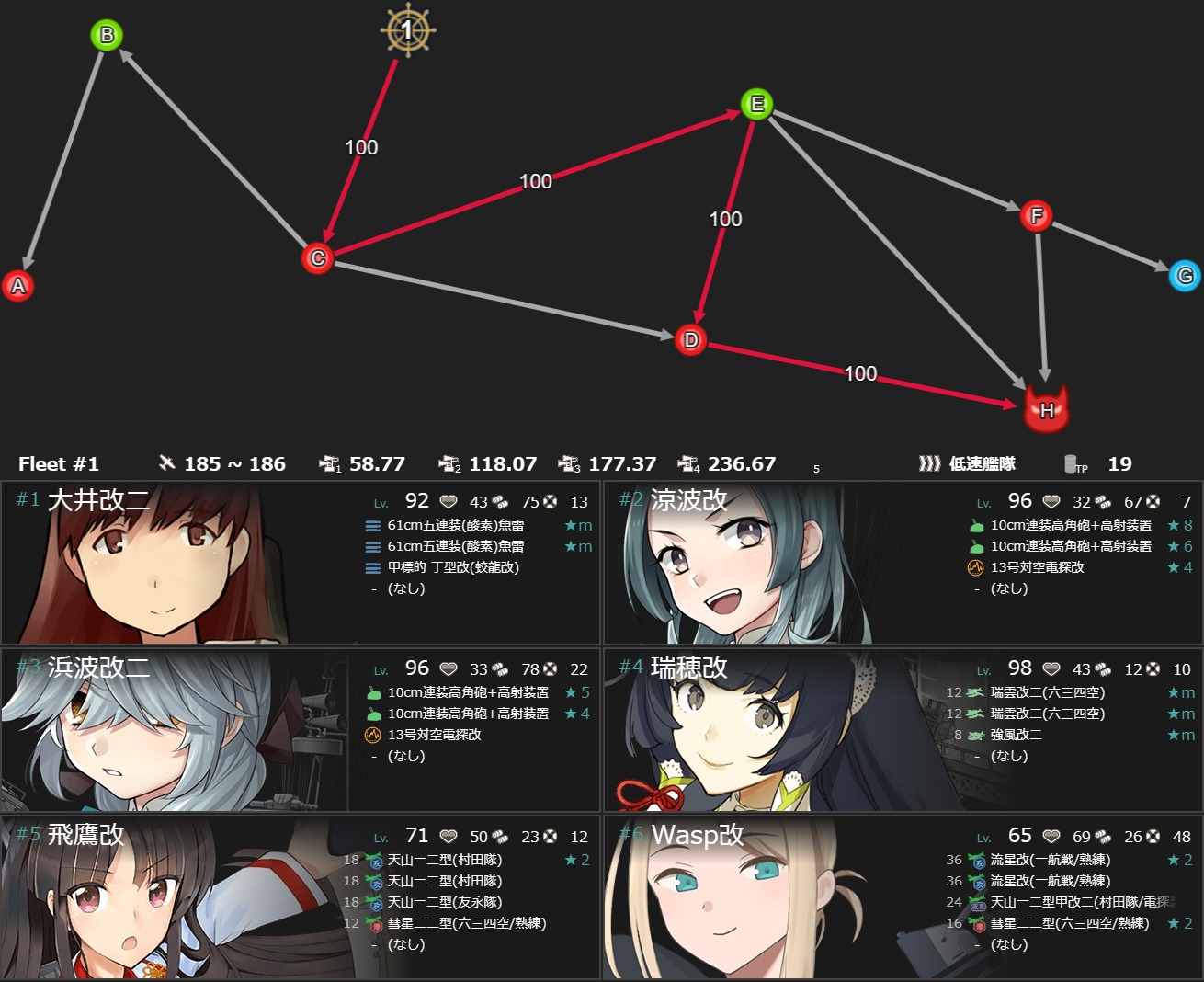 艦娘の指定は更に厳しいが、A勝利条件なので達成は容易。(でも一応、Sを狙って編成している)